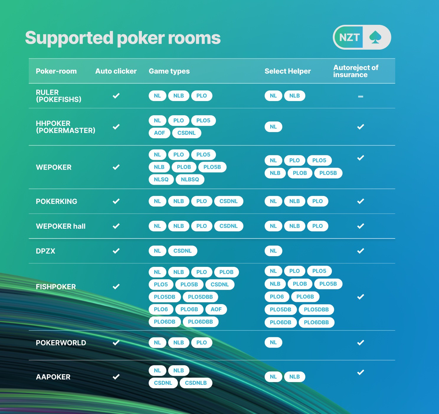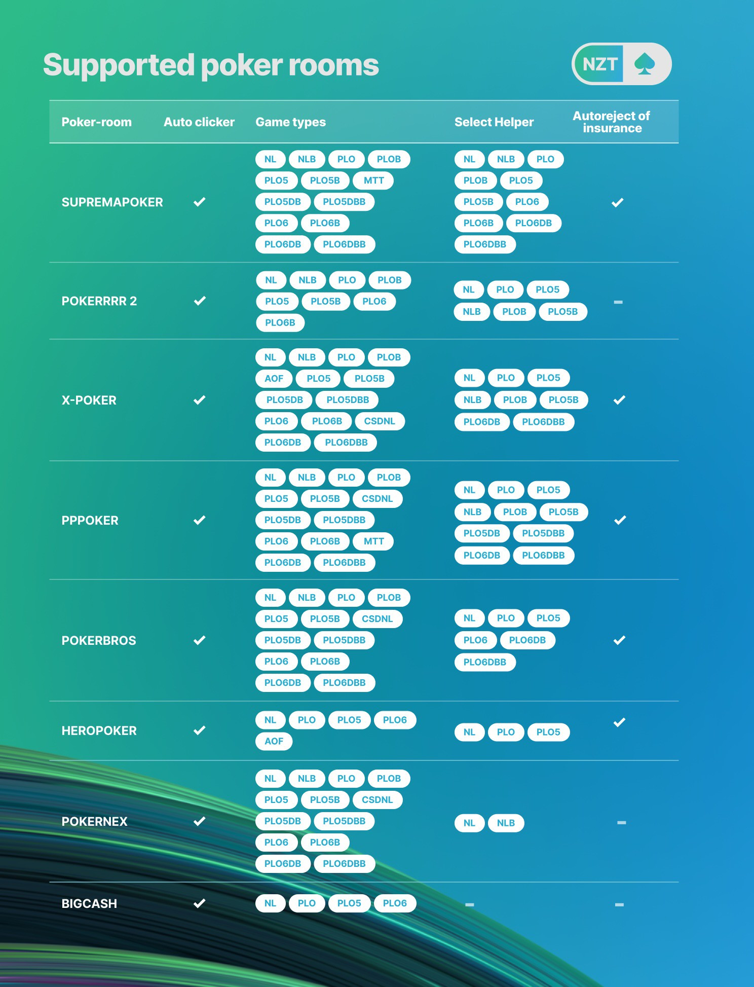 支持的扑克平台与游戏类型